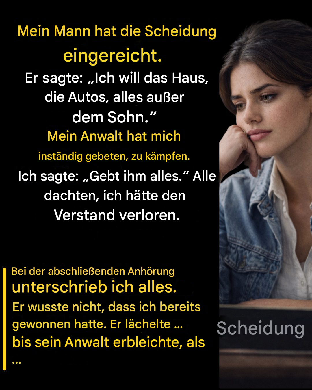 Für viele Menschen geht es bei einer Scheidung nicht nur um Trennung, sondern darum, zu lernen, das wirklich Wichtige zu schützen, inmitten der Unsicherheit darüber, was später passieren wird.